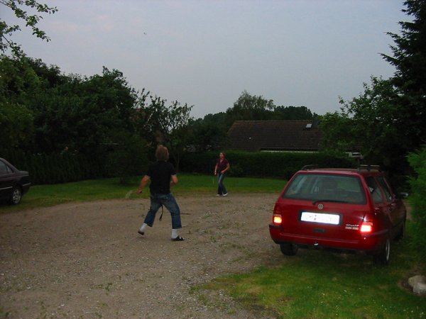 wo ich sehnlichst von den eben fertiggefrühstückten Urlaubern Carsten (mein Bruder) und Melanie (seine Freundin) erwartet werde.Weil für den Nachmittag schlechtes Wetter vorhergesagt ist, verlieren wir keine Zeit. Ich schleppe nur kurz meine wenigen Klamotten ins Haus, und ab gehts zum Weissenhäuser Strand. So habe ich schon um 13:15 Uhr den ersten Schwimmgang in der Ostsee seit über zehn Jahren. Einzig störend sind Unmengen an kleinen scharzen Tierchen, die am Strand über uns herfallen. Fälschlicherweise halten wir diese zunächst für Gewitterfliegen. Dieser Irrtum soll sich später aufklären. Da es langsam bewölkt, fahren wir gegen 15:00 Uhr heim. Es können Reiseschweiß und Meersalz abgeduscht, Taschen entpackt und eingekauft werden. Nach einem frühen Abendessen wird noch ein wenig geglotzt, der Tag ist nach den Anstrengungen für mich um 22:15 Uhr beendet. Freitag 07.07.2006 - Neue Lande